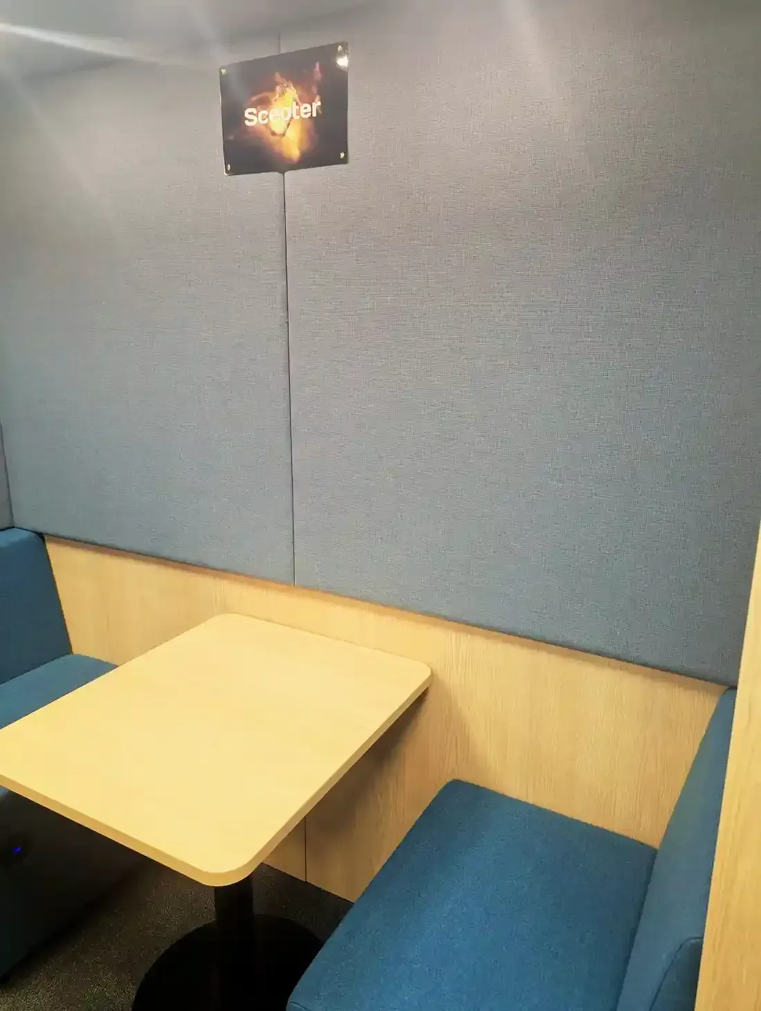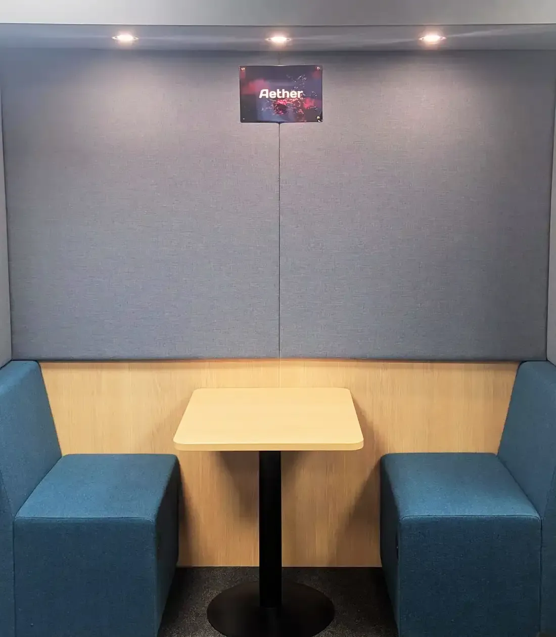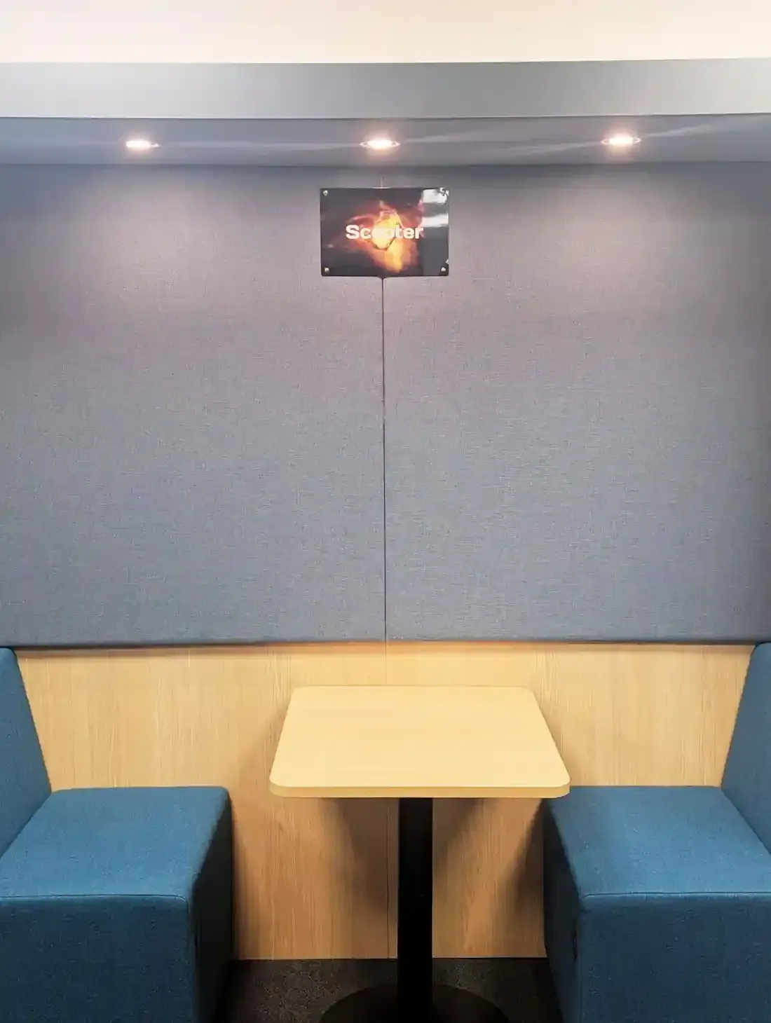 The Orb is the perfect place for small team meetings with space for 4 people. The Orb comes with access to Wi-Fi and an integrated 20" monitor and charging facilities.