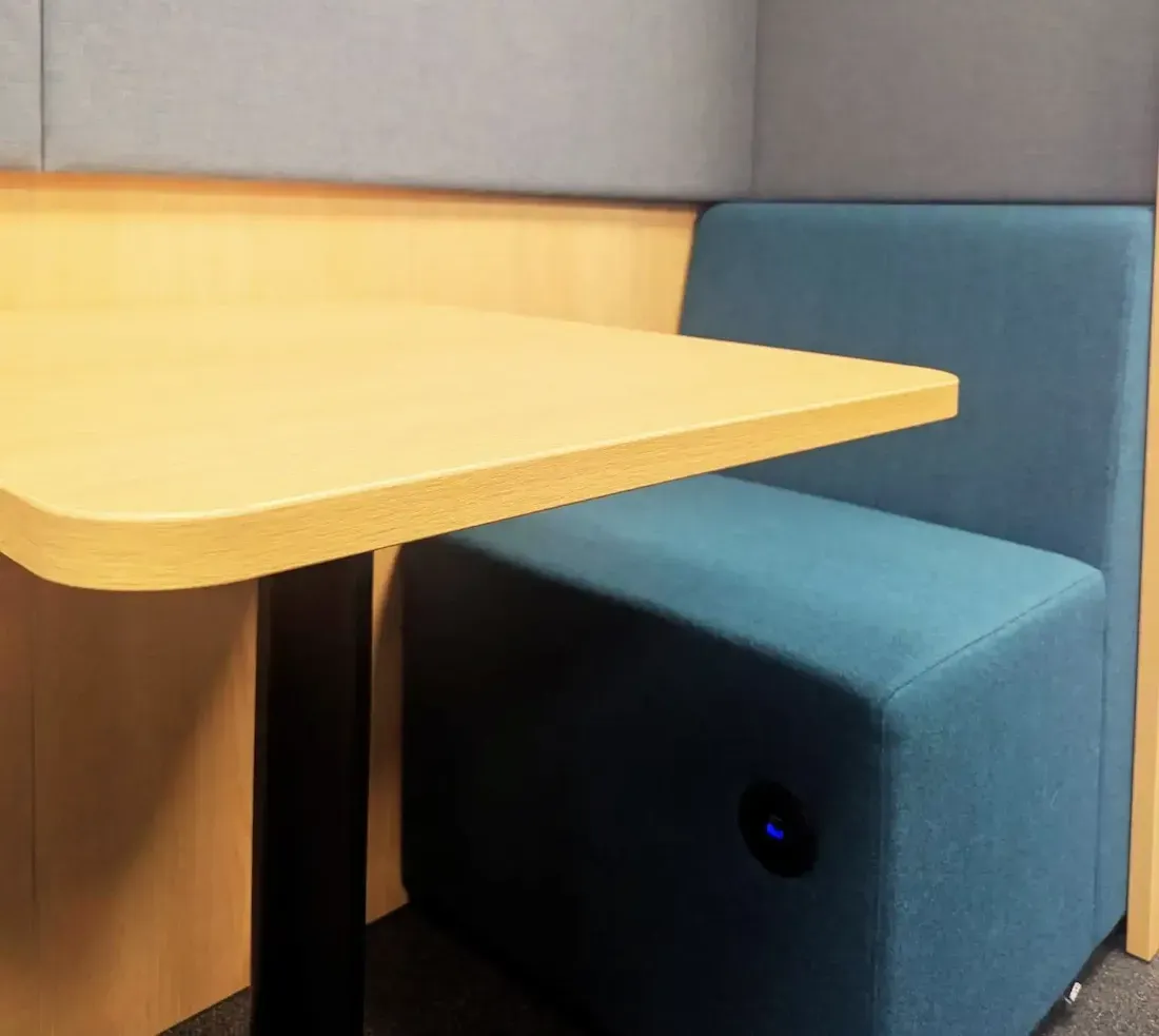 These two workspaces are great to get some individual work done whilst still working in an open environment. They come with Wi-Fi and charging ports.